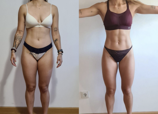nos contrató con el objetivo de perder grasa, y tomamos la decisión de posponer ese objetivo inicialmente, y le explicamos la razón: cuando empezó a trabajar con nosotros estaba comiendo muy pocos carbohidratos, algo frecuente en el Crossfit (qué es el deporte que ella practica) y no muchas calorías, pero aún así no conseguía bajar de peso.